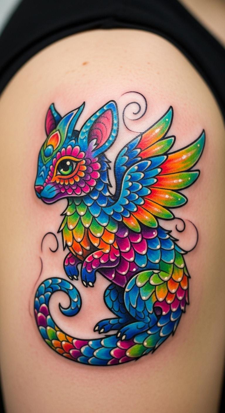 Alebrijes creatures spark imagination. Try one on your hand. They embody colorful myths. Color in animal drawings at home. Use crayons you own. It’s simple. Find deals on platforms like social media. Tattoos might be $55. Test with body paints from your kit. Add personal colors. Focus on key features. This design brings joy affordably.