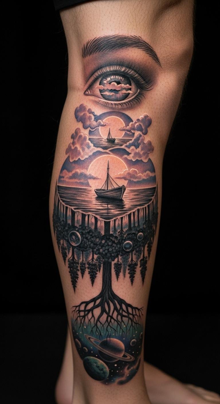 Surreal elements bring sonder’s depth alive. Opt for overlapping scenes like dreams. Paint a rough version with cheap paints. Put on your calf for impact. Find surreal artists for $100 sessions. Layer elements carefully. Quick idea: sketch overlaps on paper. This approach is budget-smart. Bold the focus: dream overlaps. Unlock a tattoo that blurs reality and connection.