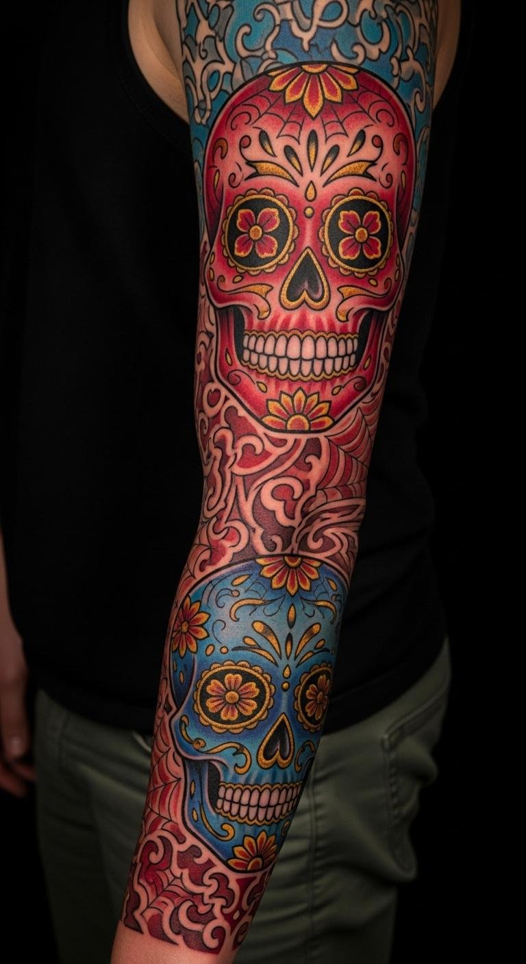 Vibrant Colorful Sugar Skull Sleeve