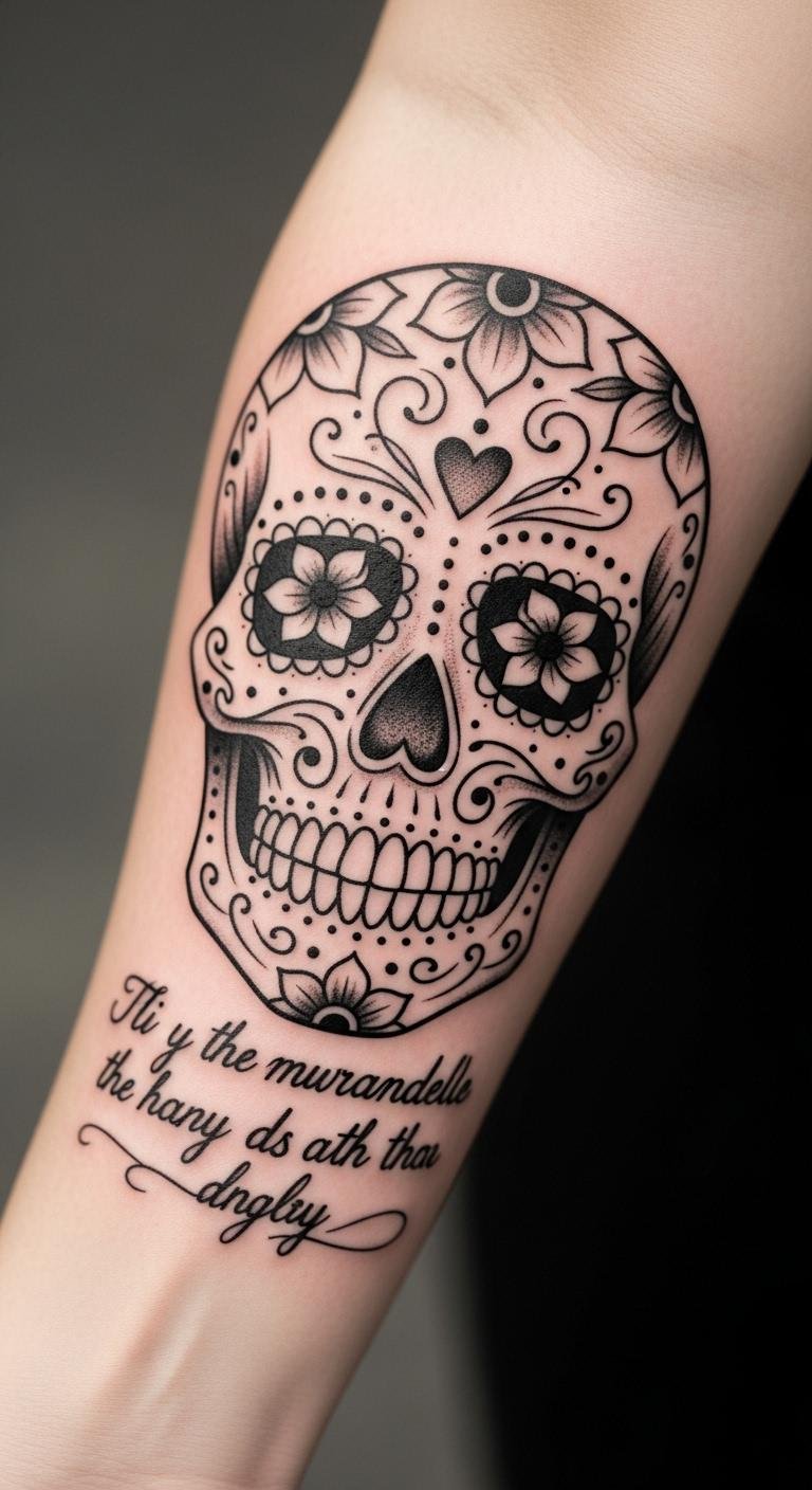 Add a quote to your sugar skull for meaning. Write phrases on paper with a pen. Pick something short and fitting. Place it on your rib for privacy. This might cost $180. Use word apps for layout. Choose fonts that match. Keep quotes simple. Practice with stickers under $10. This personalizes your ink fast.