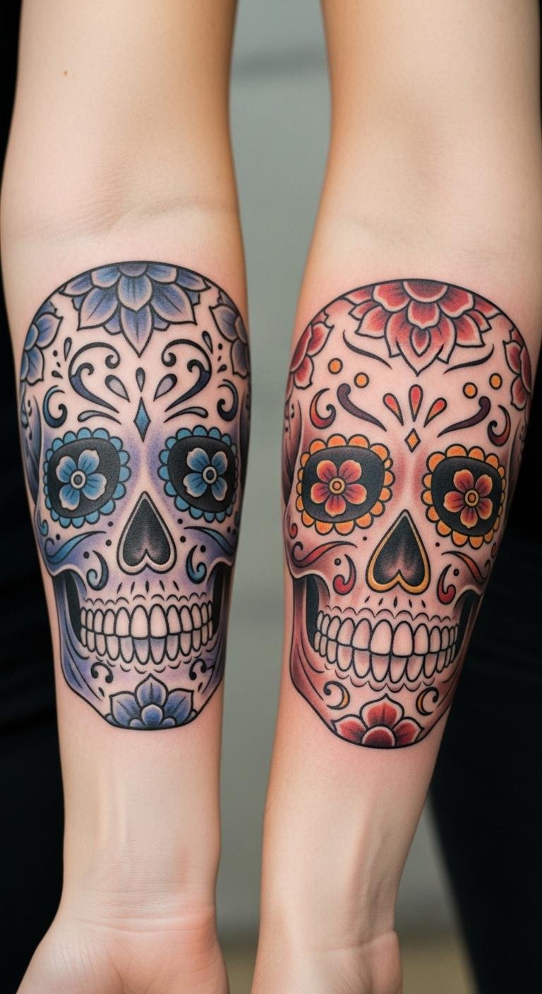 Try a watercolor sugar skull for a soft, artistic vibe. Grab watercolors and paper for under $10 to experiment. Blend colors like blues and pinks in your sketch. Put it on your ankle for a discreet option. Tattoo pros could do this for $250. Use free online tools to preview the look. Add personal colors that mean something to you. This method keeps things light and fun. Test with washable paints at home first. You’ll get a beautiful result without overthinking.
