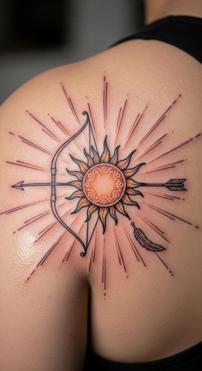 Hou Yi sun motif includes arrows for a heroic touch. It brings action to the design. Energetic spin. Draw bows on paper. Free motif generators. Studios at $120. Site on shoulder. Add with tools. Cream keeps. Ideal for strength. Sketch ideas.