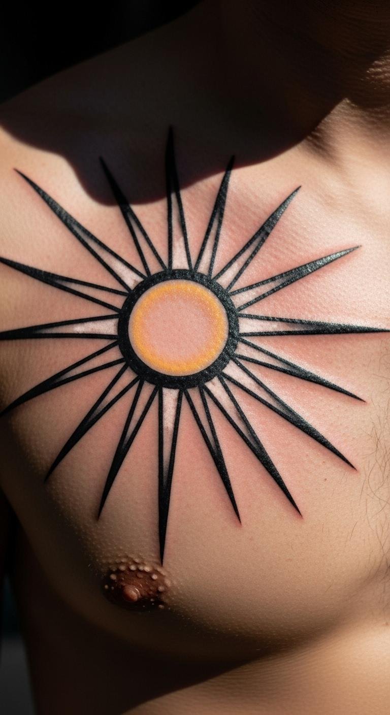Highlight the masculine sun with rays that show vitality and power. This design stands out with strong lines. It’s about energy and light. Sketch rays on paper using a straight edge. Free sun drawing tools online make planning easy. Studios may offer deals on bold work, about $110. Place it on your chest for impact. Include flames with basic crayons for trials. Clean care with water keeps it sharp. Great for motivation. Practice daily drawings.