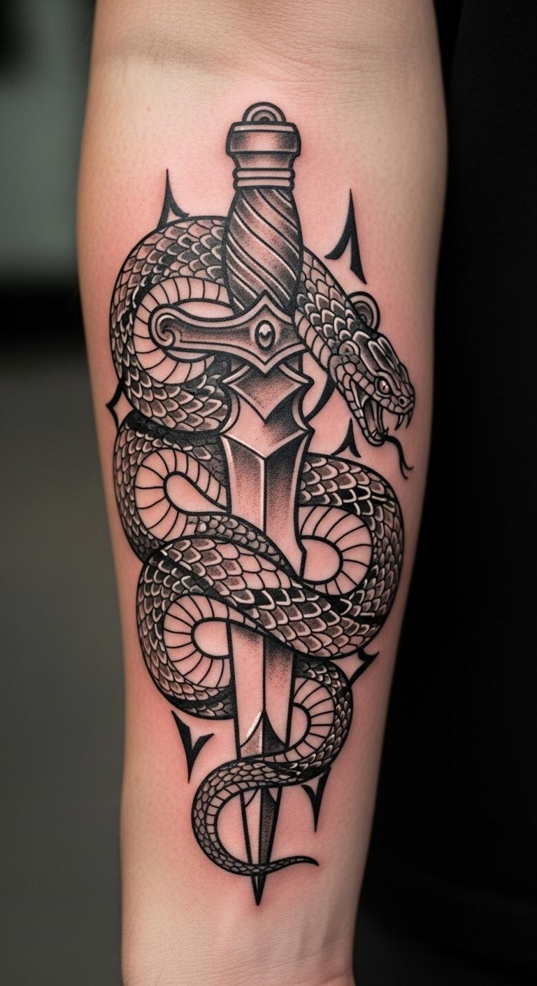 Dagger with Snake Tattoo