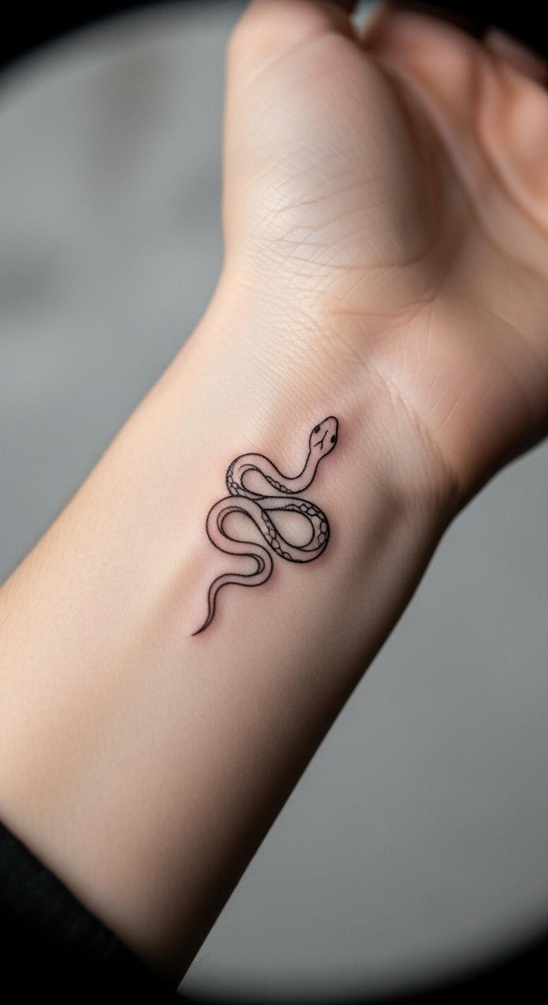 Go subtle and meaningful. A small wrist snake idea uses light lines for daily wear. It stands for wisdom in a compact form. This costs just $60. Draw on your wrist with eyeliner at home. Keep it hidden or show it off as needed. It’s perfect for low-commitment folks. Practice with stickers first.