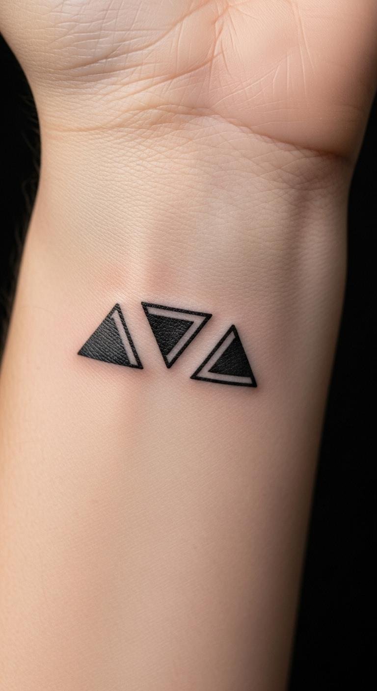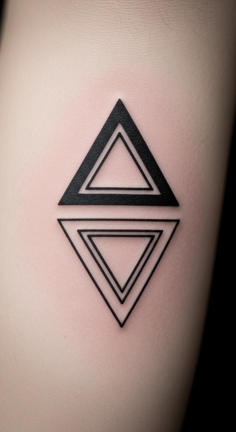 A downward triangle speaks to change and fresh starts. It flows like water, washing away old layers. Sketch it quickly on your hand with a pencil to test ideas. Buy wash-off tattoos for $10 to wear around the house. They help you decide if it fits your story. Add it to your journal for daily reflection. Find an affordable artist online who offers deals for first-timers, often under $80. Keep designs plain for a strong effect.