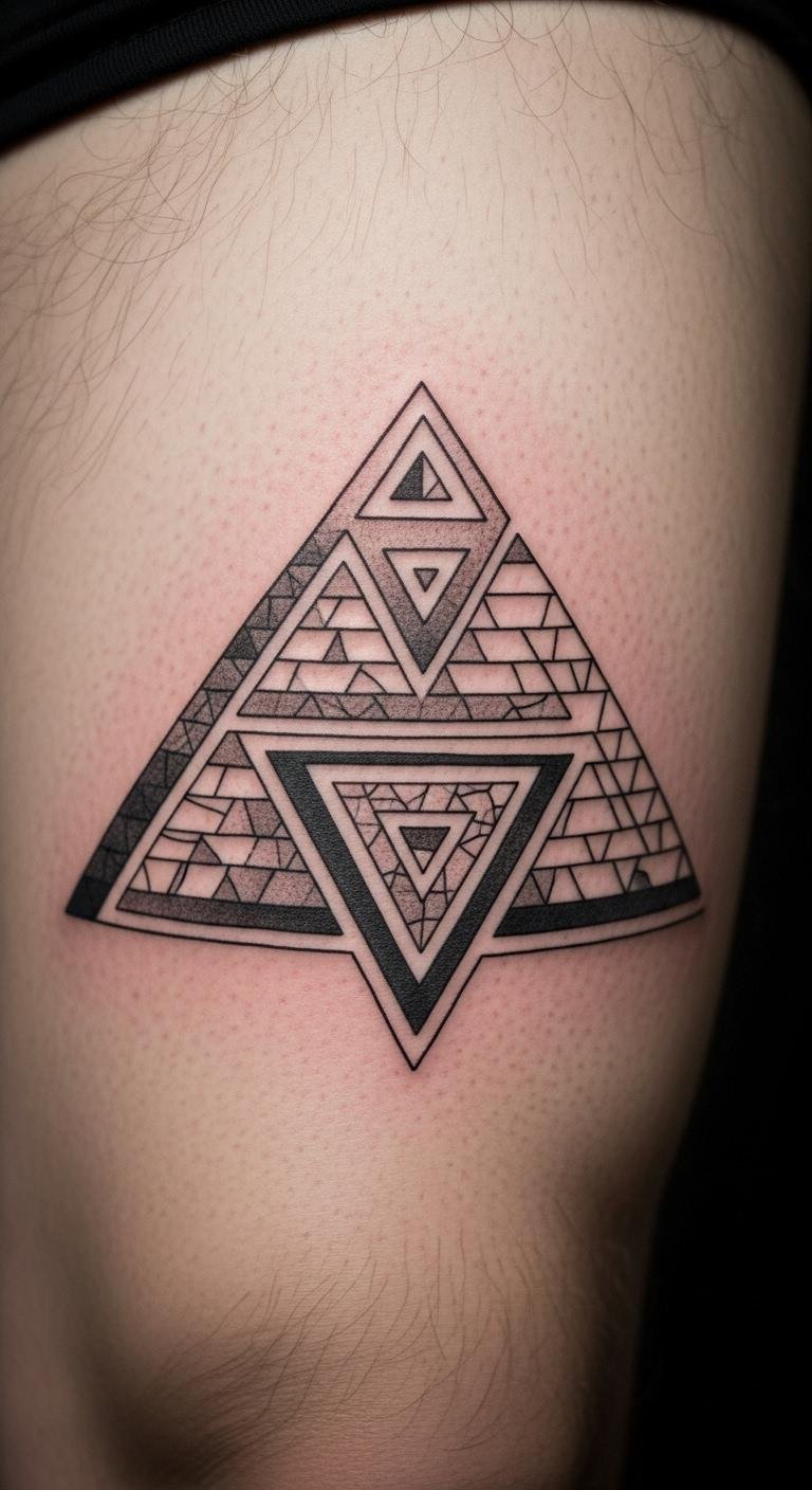 Triangles inspired by pyramids bring energy and focus. They represent solid foundations in your life. Stack drawings to mimic pyramids. Find pyramid stickers for $3. Place on study spots. Tattoo pros offer these for $45—check online. Build a small pyramid from blocks as a model.