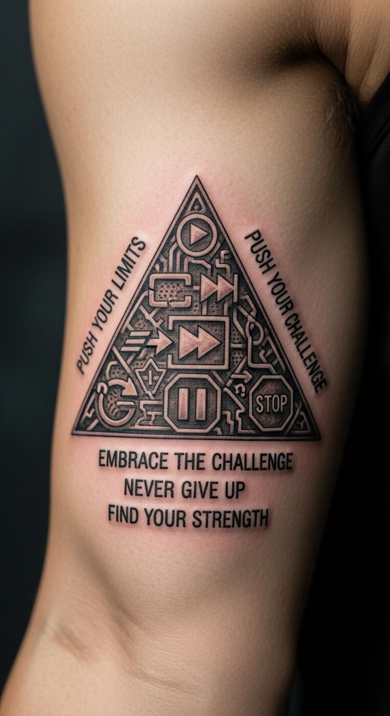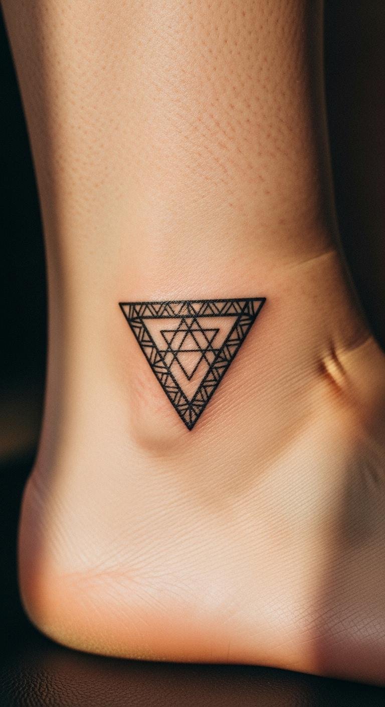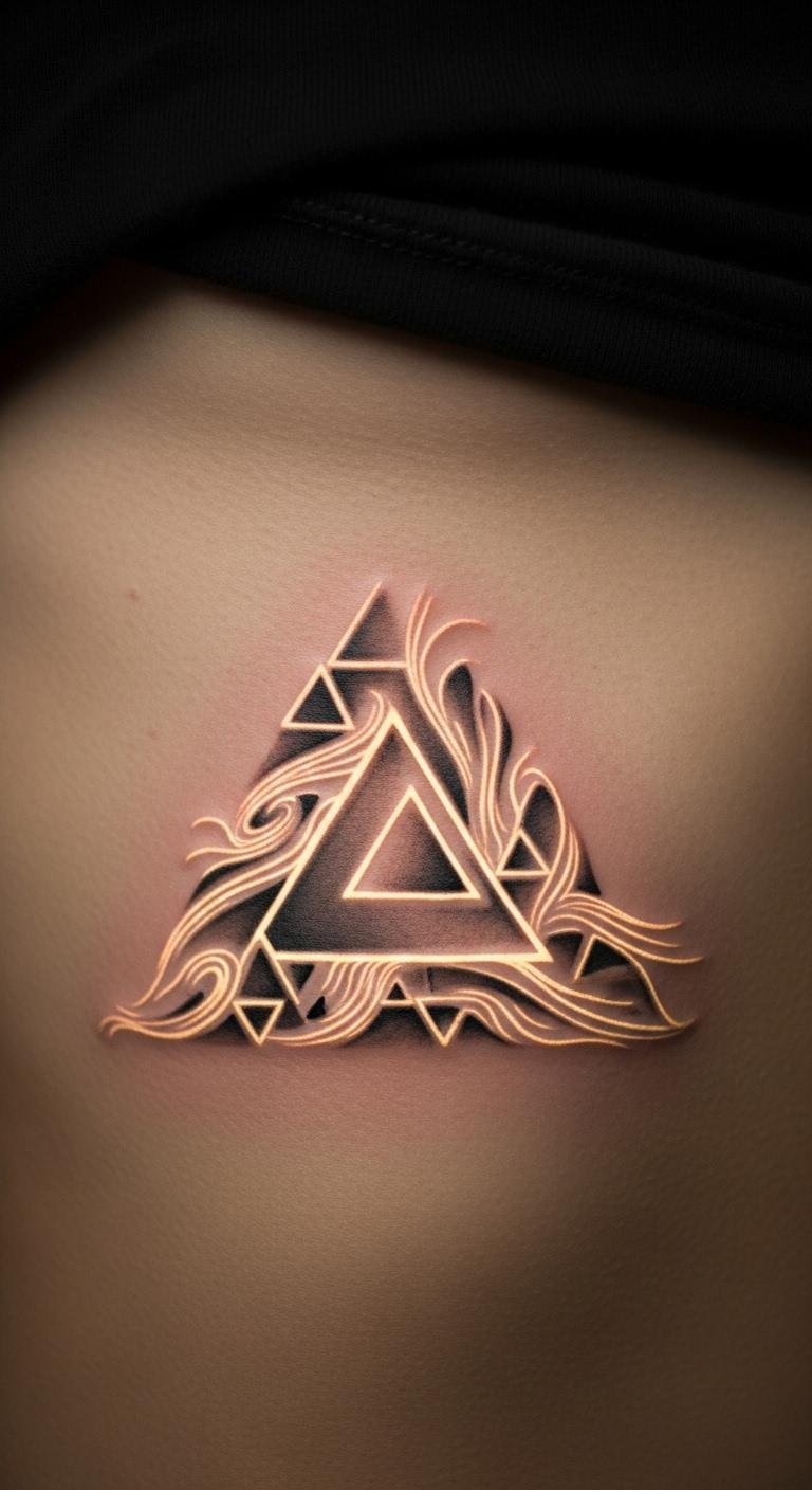An upward triangle points to growth and inner power. It means moving forward, like climbing a hill. You can start by drawing this on a notebook to match your goals. For a cheap try, get stick-on tattoos from online stores for under $5. They last a few days and show how it looks. Place one during your morning walk to feel the lift. If you like it, visit a nearby shop for a real one—aim for sessions around $50. Mix in elements like stars for extra flair.