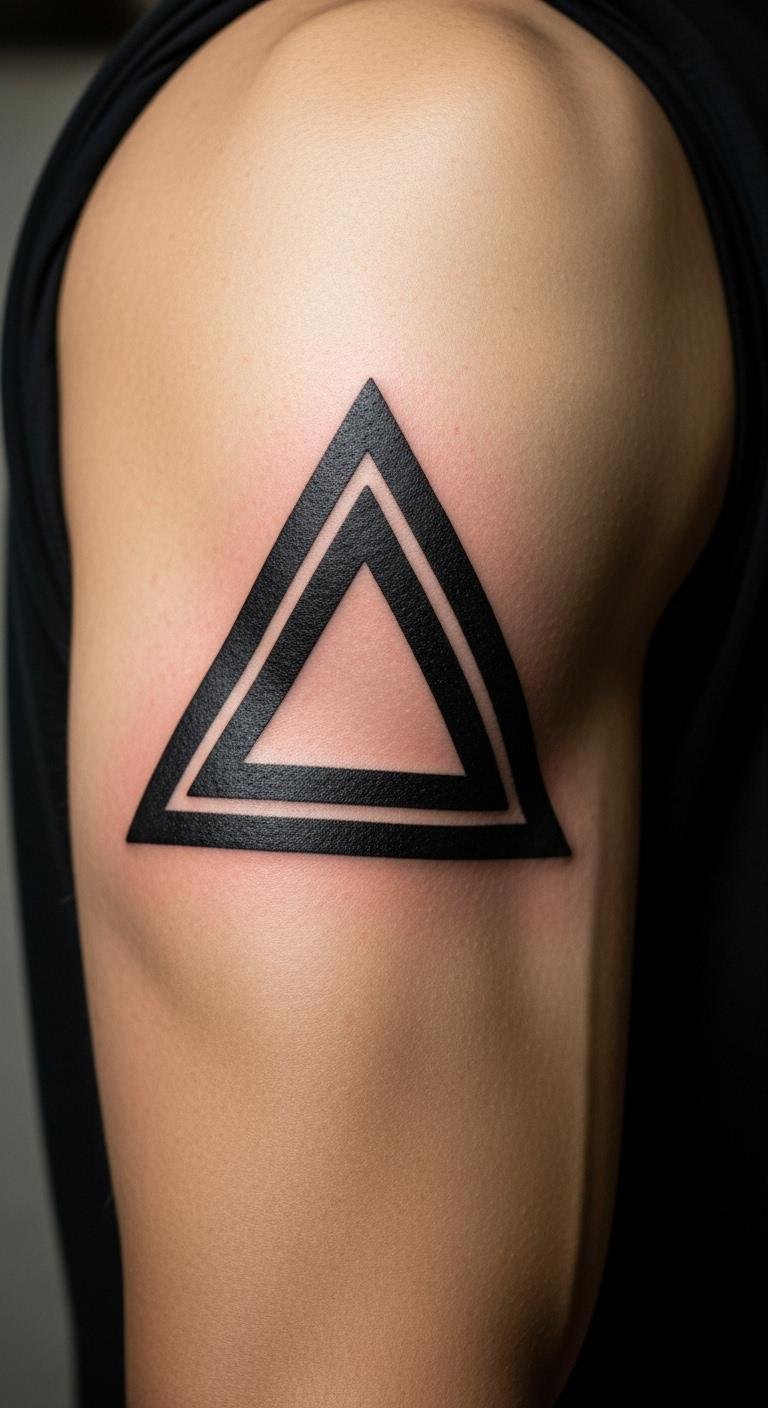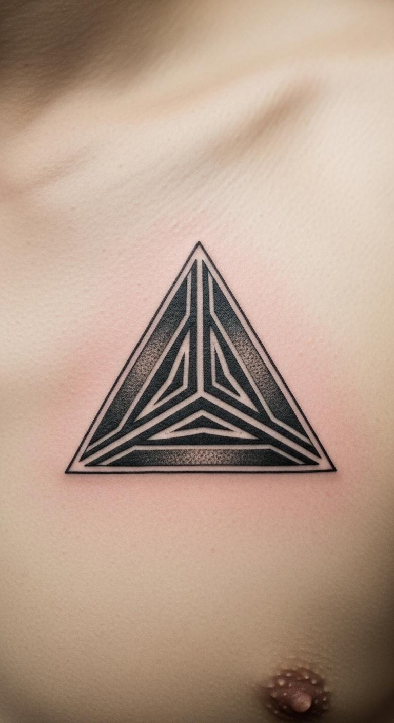 An equilateral triangle stands for balance in life. All sides are equal, just like parts of you that need to align. Think about how this shape shows things working together. You might draw one on paper first to see how it feels. For a budget option, use a free app like Inkbox for temporary designs. This lets you try it without a permanent commitment. Keep it simple: sketch with a pen on your arm. Add colors from markers if you want. People often pair this with daily routines, like meditating under it. Go for a local artist who charges less than $100 for small work.