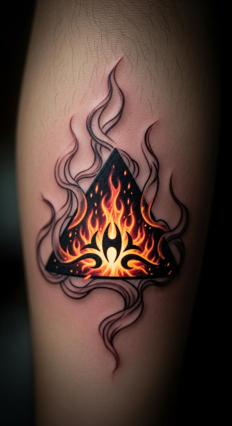 Triangles can stand for fire, full of energy and drive. They push you to act with passion. Draw flames around a triangle on scrap paper to spark ideas. Pick up flame stickers for $3 to try on your arm. Use them on workout days for motivation. Local markets might have artists for quick, low-cost sessions around $40. Add red markers for a fiery touch at home.