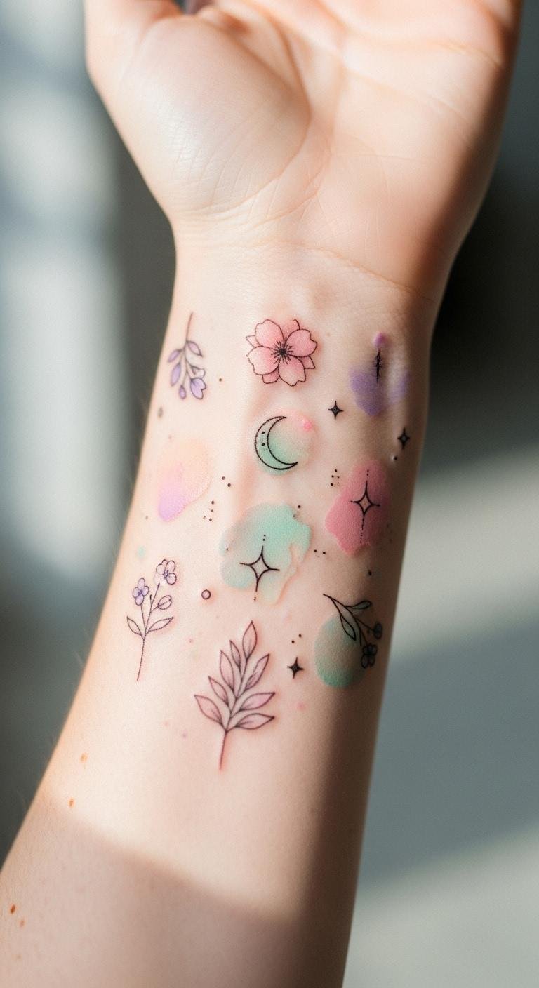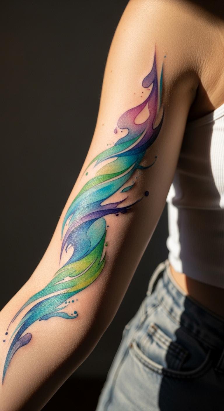 Watercolor gives a dreamy look. Try blended shades. Plan on paper. Bold this: Select colors for your mood. Free apps help. Start with washes at home. Tattoos are around $130.