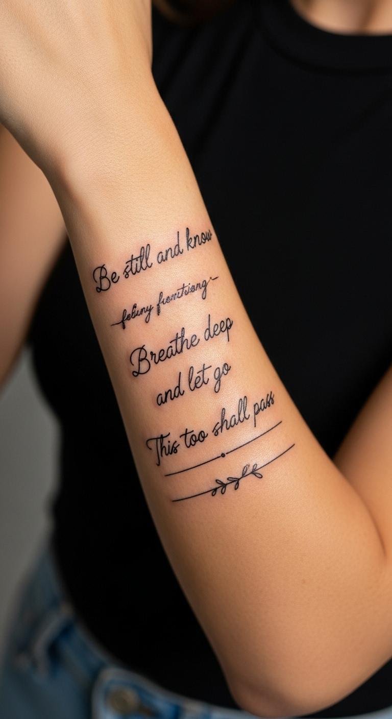 Words on skin can lift you up. Quotes like “Be brave” work well in simple scripts. Write your favorite on paper to see how it flows. Put it on your wrist for easy viewing. Bold this: Select phrases that fuel your day, such as strength words. Use free font apps to design at home. Temporary tattoos from online shops cost less than $5. Aim for 150 at a local artist for the real deal. Combine with symbols for more impact. This method helps you carry motivation everywhere.