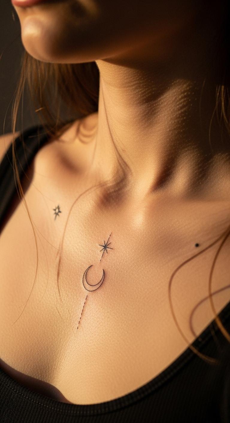 Collarbone spots work for hidden gems. Use a star or dot pattern. Plan with a quick sketch. Bold this: Pick symbols for your inner world. Free online generators aid design. Temporaries are affordable. Real ink is about $100. Keep it discreet yet powerful.