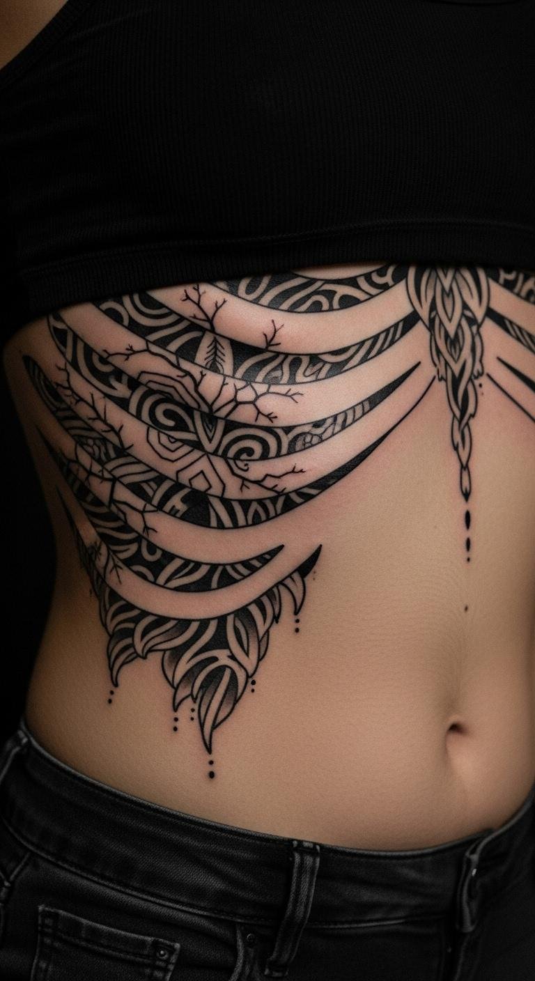 Ribcage areas hold deeper meanings. Opt for abstract forms. Draw ideas first. Bold this: Choose art that tells your tale. DIY with paper cutouts. Costs start at $150. This placement feels intimate and strong.