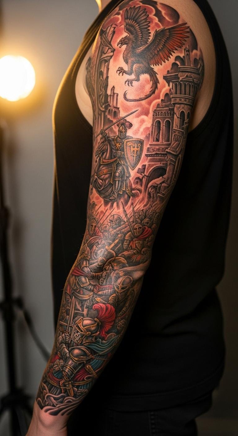 An epic battle sleeve turns your arm into a warrior narrative. Build it step by step for manageability. Plan sections with free storyboarding tools. Draw phases on your arm with markers first. Focus on key battles to control budget. Add personal heroes along the way. Search for sleeve specialists with payment options. This masterpiece unfolds your saga, adapting to your evolving life.