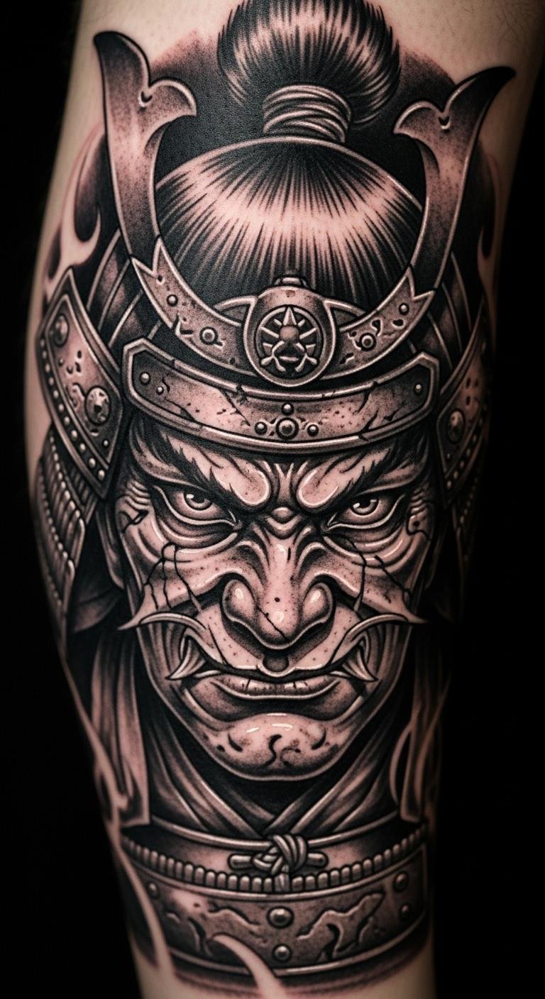 A realistic samurai portrait brings history to life on your skin. Place it on your leg for stability. Study portraits online and adjust details. Use phone filters for initial realism tests. Opt for grayscale to save on colors. Include subtle elements for depth. Look for portrait deals at local shops. This design captures essence, fitting historical buffs or modern warriors.