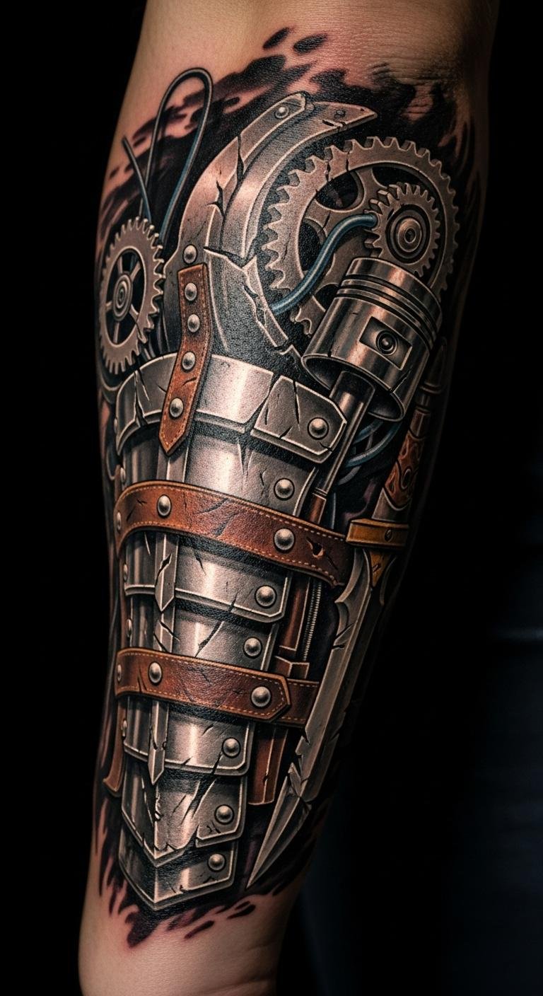 3D biomechanical styles fuse warrior themes with machine-like details for a modern edge. Try it on your forearm to showcase the depth. Use virtual try-on apps—many are free—to plan ahead. Sketch rough ideas at home with markers for a DIY feel. Focus on key elements like gears and swords to keep it budget-friendly. Combine with a constellation for a unique twist, but limit colors. Look for artists offering tech-inspired specials to cut expenses. This tattoo brings a futuristic flair, blending seamlessly with your active lifestyle.