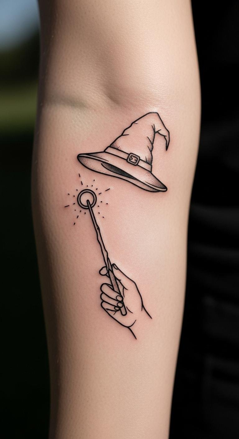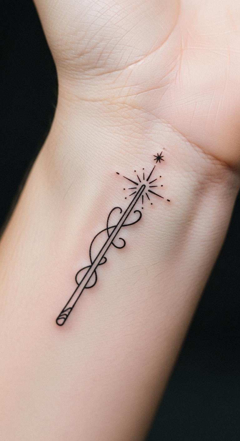 Magic wand tattoos symbolize power in a simple form. Just a wand line does the trick. Draw wands at home with a marker. Grab free wand designs online. Choose your hand for easy access. Keep it basic for under $60. Use washable ink for a test. These tattoos channel energy. Add a swirl to make it yours.