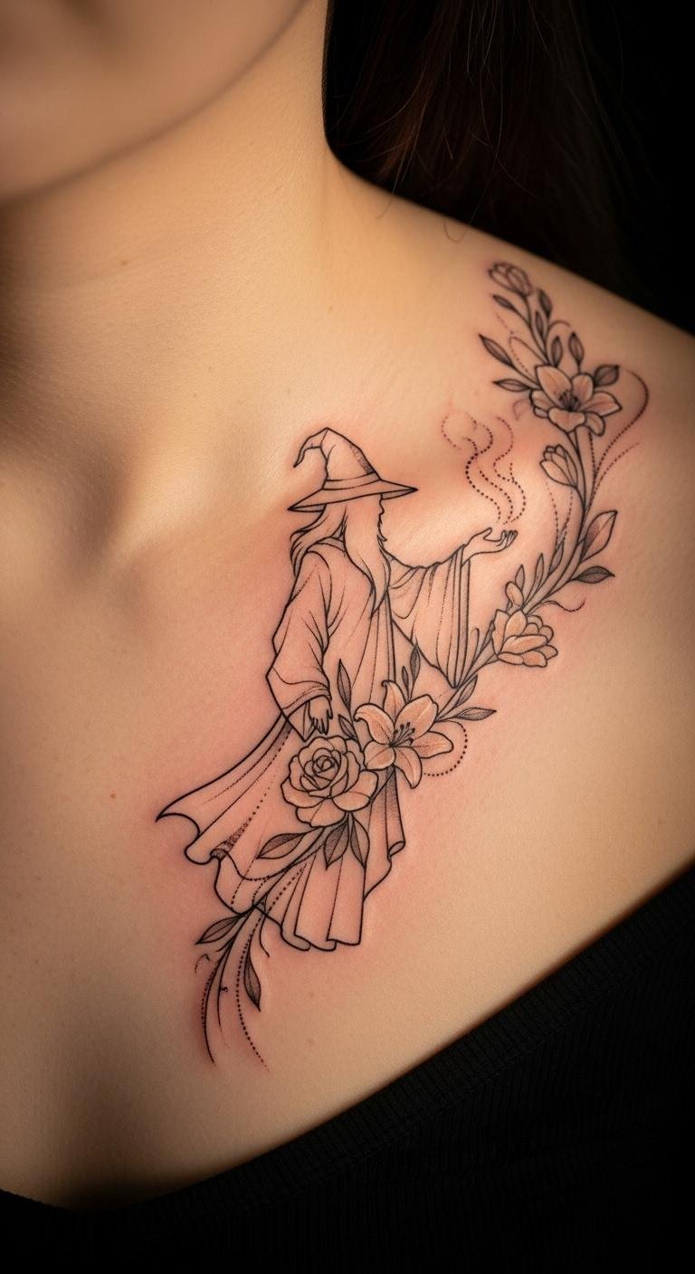 Wizard tattoos for women focus on grace and strength. Think flowing designs that empower. Sketch feminine ideas on paper. Look for free women-specific templates. Put it on your collarbone for elegance. Aim for affordable options under $100. Try henna designs at home first. These tattoos show power. Add flowers to personalize.