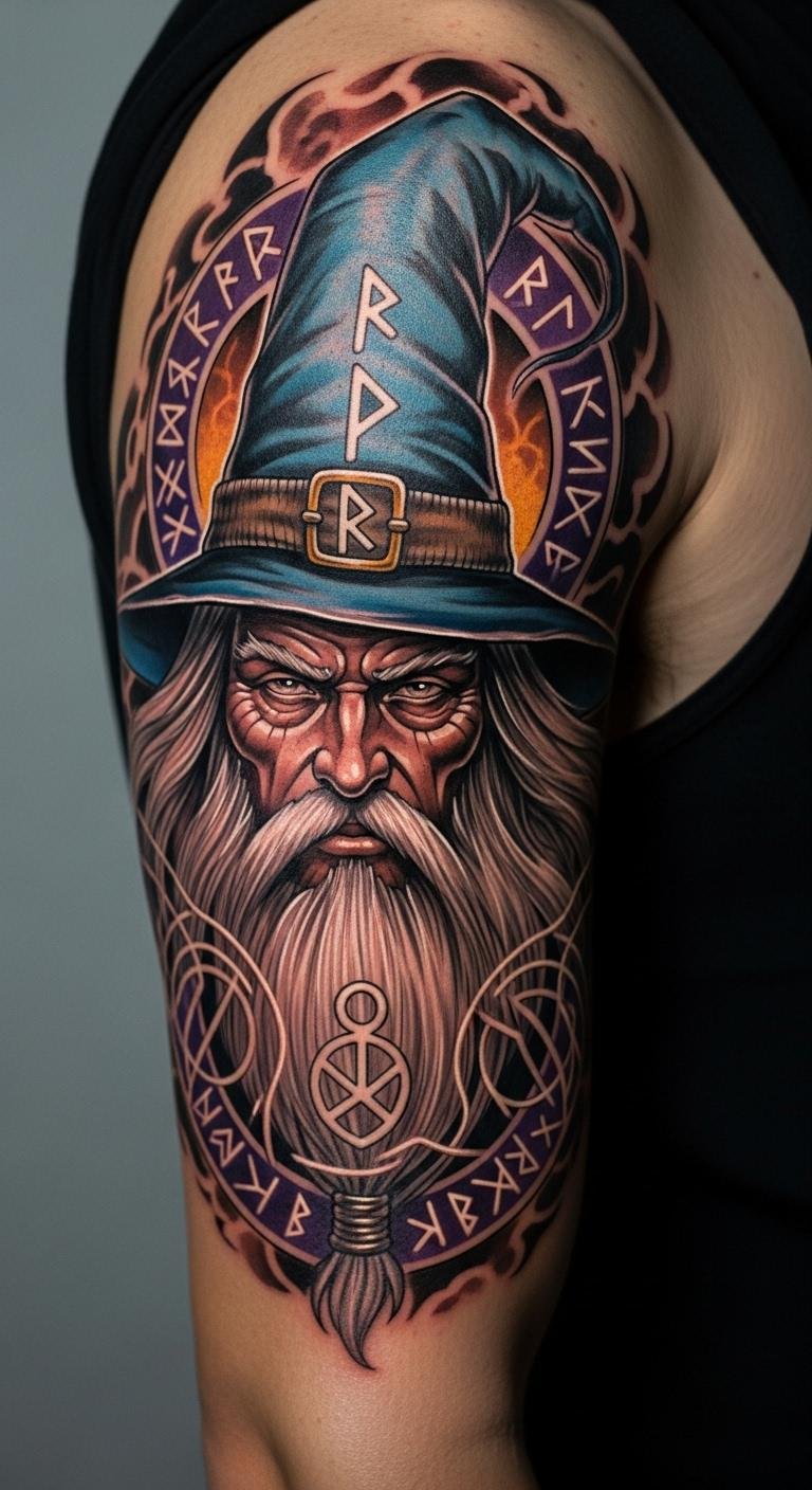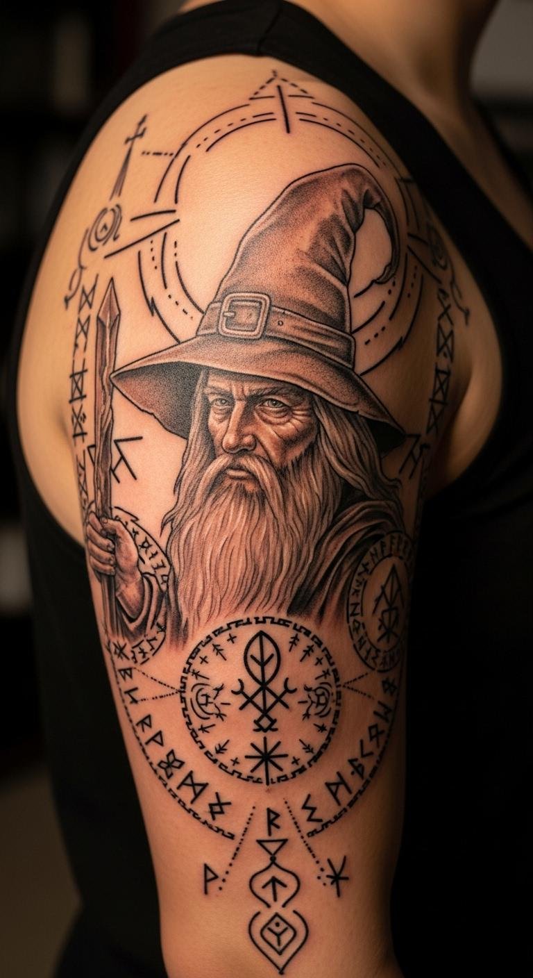 Wizard tattoos for men highlight strength and mystery. Strong lines make a statement. Draw bold sketches on paper. Find free manly designs online. Choose your bicep for show. Keep costs low at $80. Use body markers for trials. These tattoos convey depth. Tweak with a shield element.