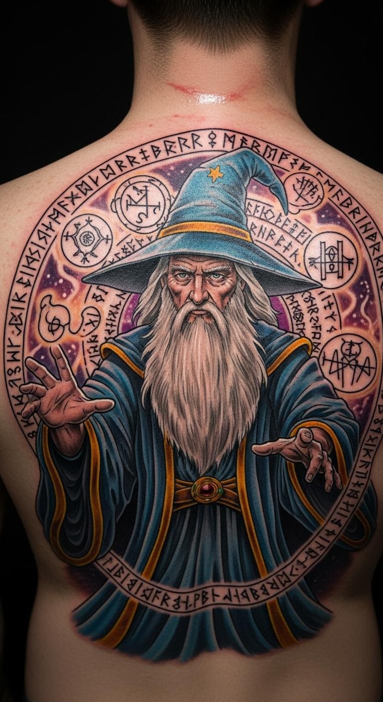 Wizard tattoos with historical references use old motifs. Timeless symbols work great. Research and draw them. Find free historical art. Place on your back. Keep it simple for affordability. Use history books for ideas. These tattoos honor the past. Include a favorite era.